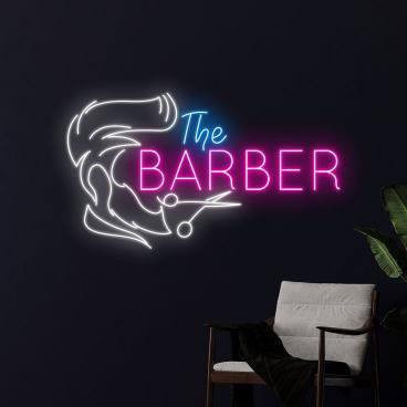 تابلو نئون طرح The Barber یکی از جذابترین و مدرنترین گزینهها برای دکوراسیون آرایشگاه مردانه است. طراحی شیک و مینیمال آن با ترکیب رنگهای صورتی، سفید و آبی جلوهای خاص و چشمنواز ایجاد میکند. این تابلو با نور نئون نرم و یکنواخت خود، فضای محیط را گرمتر و حرفهایتر میسازد و حس لوکس بودن را به مشتریان منتقل میکند.